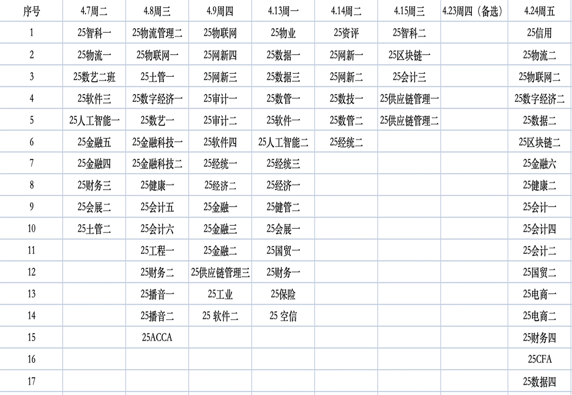 活动时间:共3周(校历6-8周),每周三天,晚上 19:00-20:30。具体班级参照日程安排详见:附件1